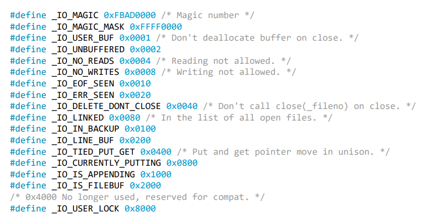 여기서 0xfbad2c84는 _IO_MAGIC, _IO_NO_READS, _IO_LINKED, _IO_TIED_PUT_GET, _IO_CURRENTLY_PUTTING, _IO_IS_FILEBUF 비트가 포함됨
