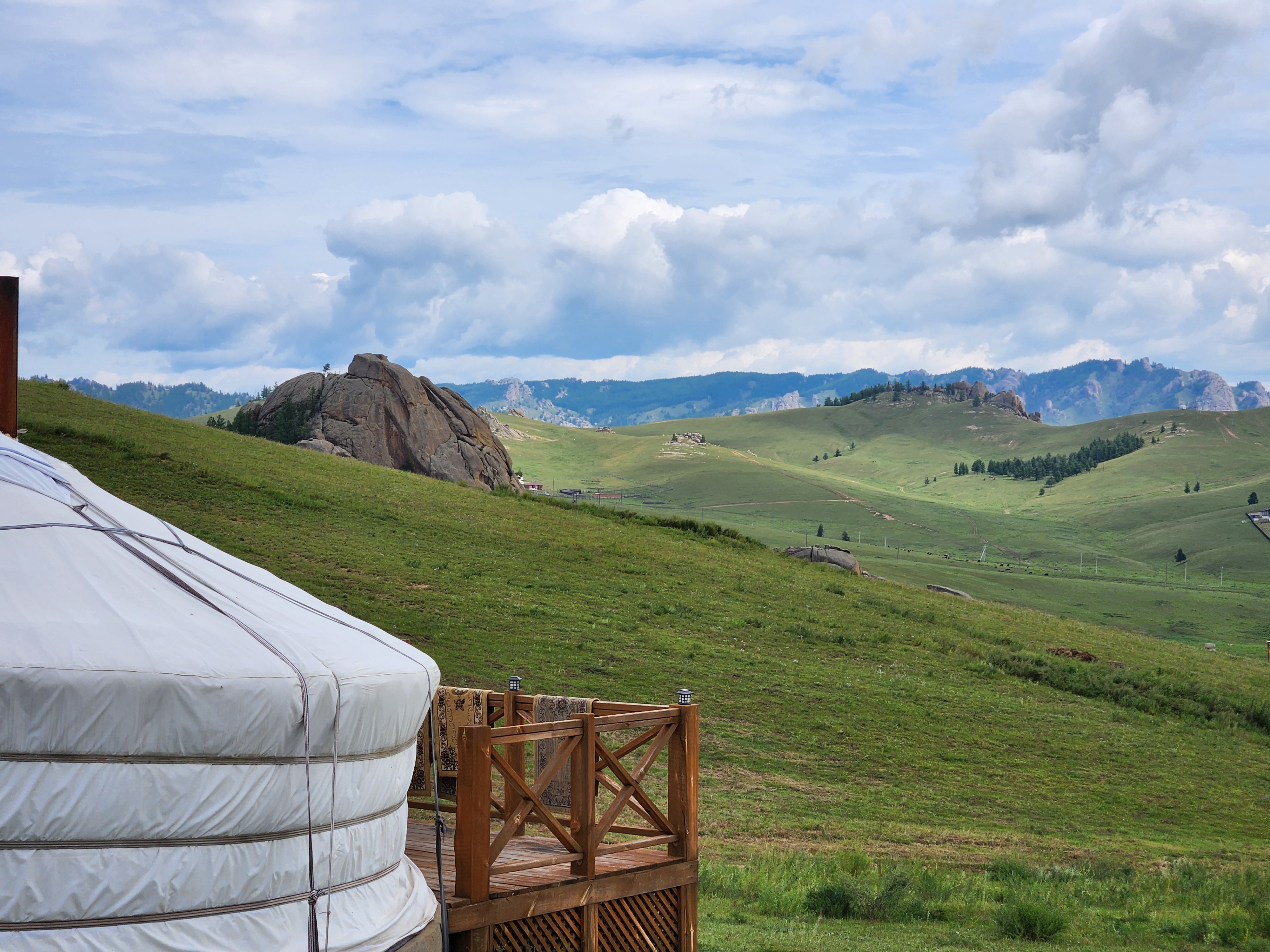 언덕 넘어에는 현지인들이 거주하는 듯한 게르와 목장이 있었다.